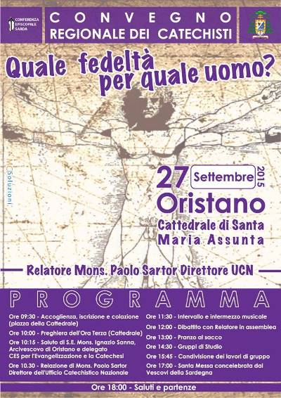 Quale fedeltà per quale uomo? È il tema scelto per il prossimo Convegno Regionale dei Catechisti che vivremo Domenica 27 settembre 2015, ad Oristano nella Cattedrale di Santa Maria Assunta, sarà un occasione per prepararci e riflettere sul 5° Convegno Ecclesiale Nazionale che si terrà a Firenze nel novembre del 2015.