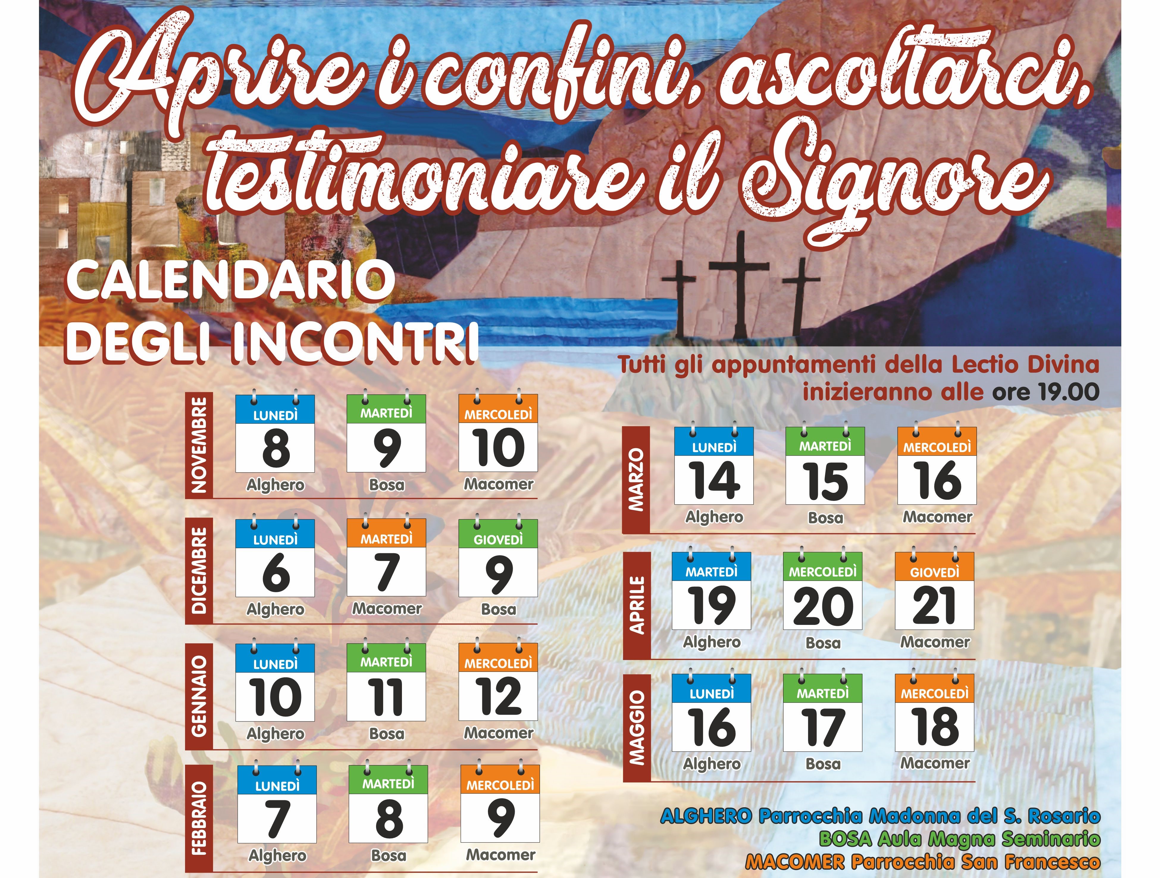 Si comunica che, a causa della situazione pandemica che ha visto, in questi giorni, l’innalzamento della curva dei contagi in tutte le nostre Comunità, gli incontri foraniali di Lectio divina previsti per il mese di Gennaio (Lunedì 10 ad Alghero, Martedì 11 a Macomer e Giovedì 12 a Bosa) sono annullati.