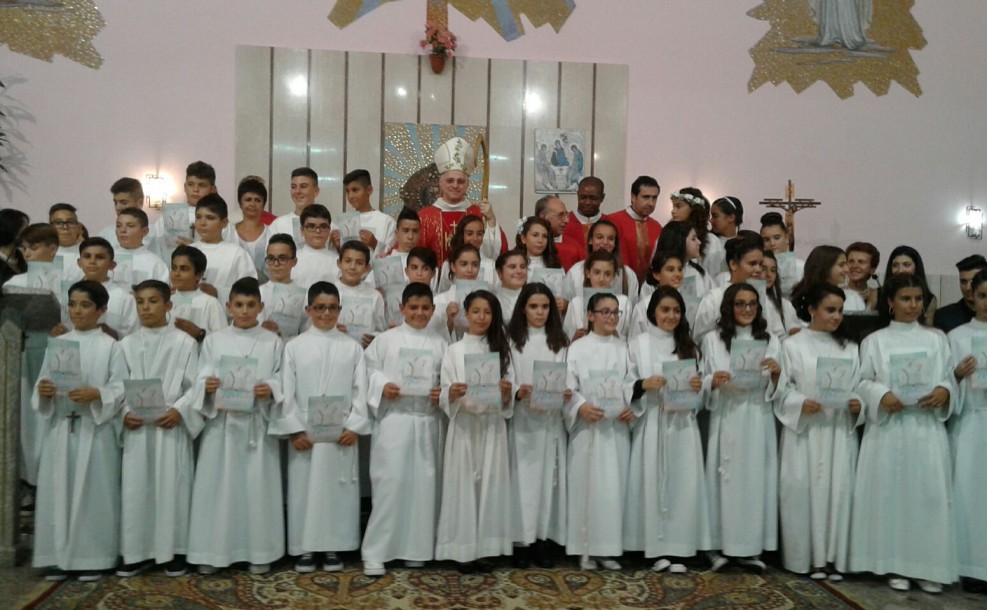 L’11 Ottobre 2015, presso la nostra Comunità di San Giuseppe in Alghero, 43 fanciulli appartenenti alla Parrocchia e 3 adulti hanno ricevuto dal Vescovo della Diocesi di Alghero-Bosa Mons. Mauro Maria Morfino il Sacramento della Confermazione o Cresima.