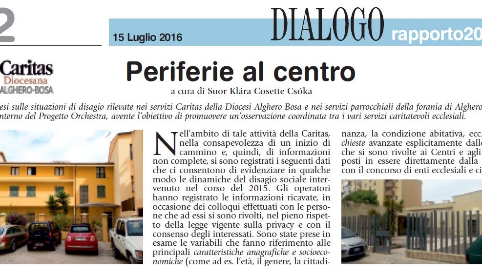 Dati servizi di Carità 2015 Posted on 31 Luglio 20169 Agosto 2016 by Sr Cosette Csoka Si riportano qui i dati Caritas pubblicati nel DIALOGO del 15 luglio 2016: