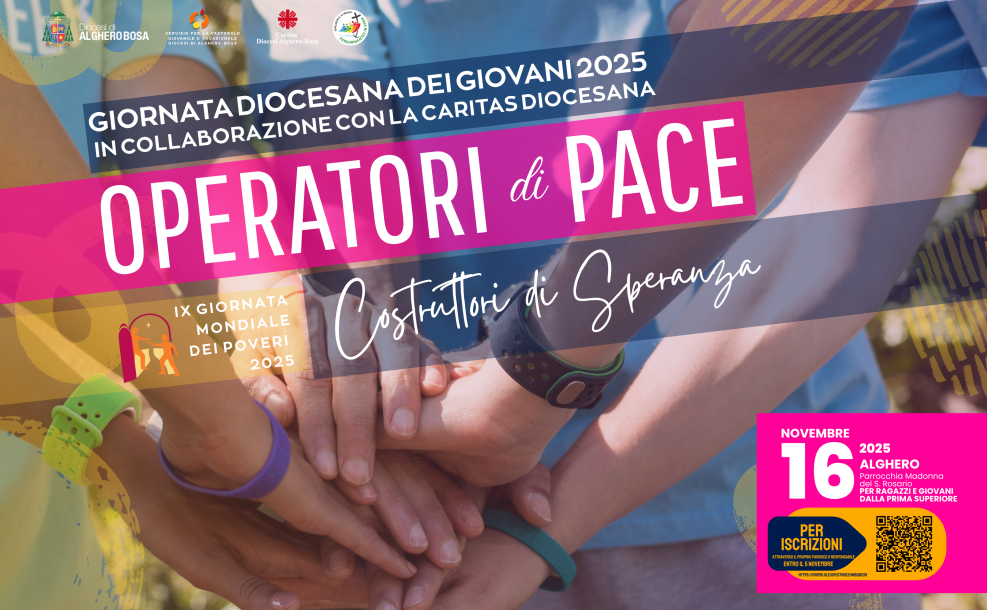 Sarà organizzata in collaborazione con la Caritas – in occasione della 9ª Giornata dei Poveri – la Giornata diocesana dei Giovani promossa dal Servizio diocesano per la Pastorale Giovanile e Vocazionale che si terrà Domenica 16 Novembre 2025 ad Alghero nella parrocchia della Madonna del S. Rosario.