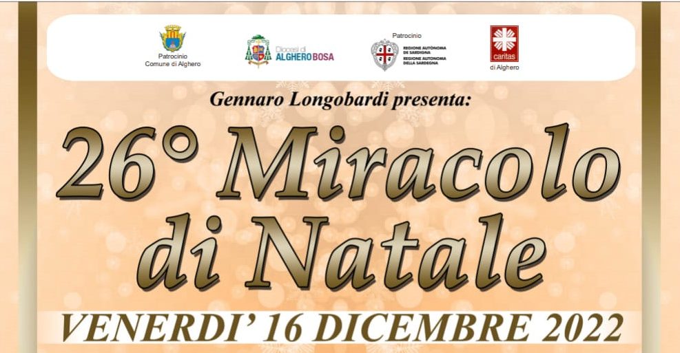 Evento benefico senza scopo di lucro, il Miracolo di Natale è volto a raccogliere generi alimentari a lunga conservazione, giocattoli e articoli di prima infanzia (è vietato accettare denaro) che verranno destinati alle famiglie del Comune di Alghero.