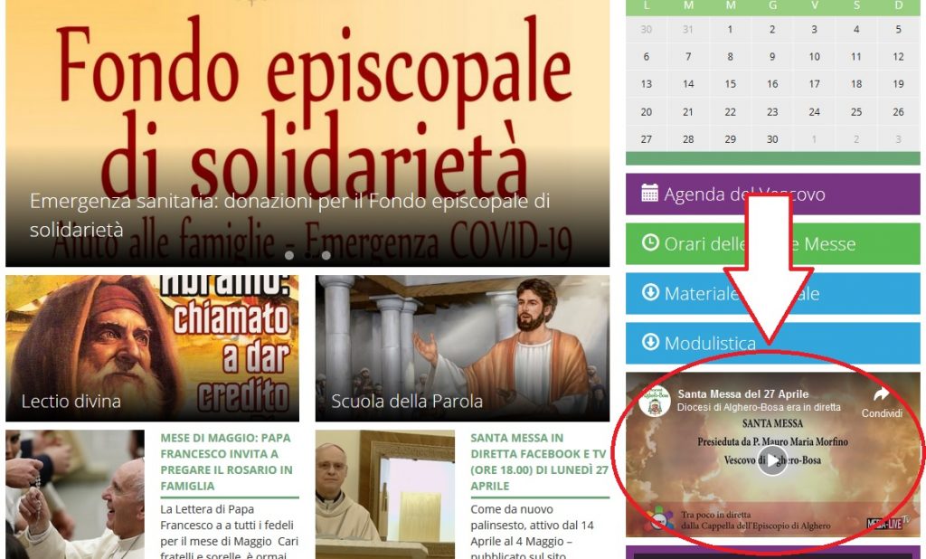 Come da nuovo palinsesto, attivo dal 14 Aprile al 4 Maggio –  pubblicato sul sito diocesano – si comunica che in data odierna, Martedì 28 Aprile, il Vescovo Padre Mauro Maria Morfino guiderà, alle ore 18.00 dalla Cappella dell’Episcopio di Alghero, la Lectio Divina.