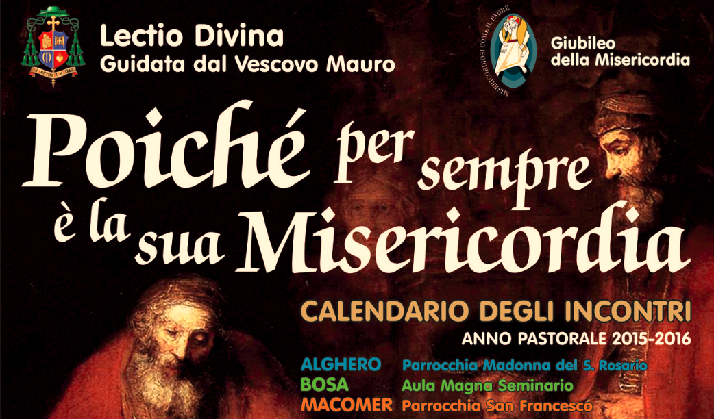 Si comunica che il primo appuntamento della Lectio Divina guidata dal Vescovo Mauro Maria Morfino “Poichè per sempre è la sua Misericordia” previsto per Lunedì 19 Ottobre ad Alghero, Martedì 20 Ottobre a Bosa e Mercoledì 21 Ottobre a Macomer è rinviato a data da destinarsi.