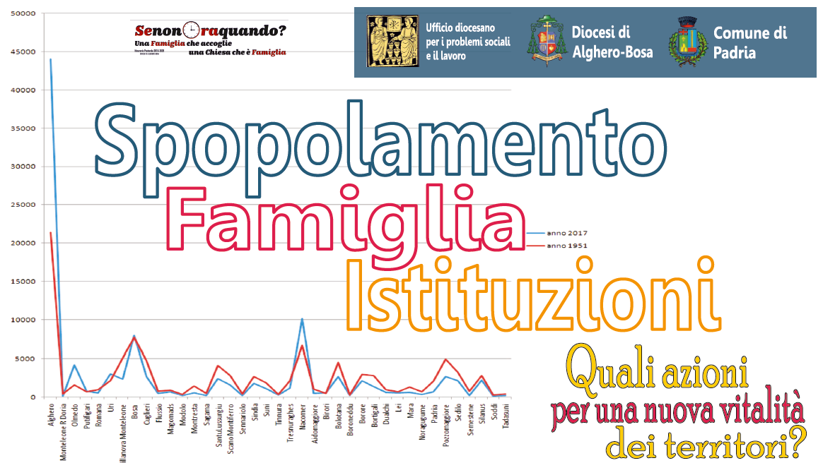 Lunedi 26 Novembre l’Ufficio per i Problemi Sociali e il Lavoro organizza a Padria, con inizio alle ore 10.00, una Giornata di Studio sul tema: “Spopolamento, Famiglia e Istituzioni – Quali azioni per una nuova vitalità dei territori?”