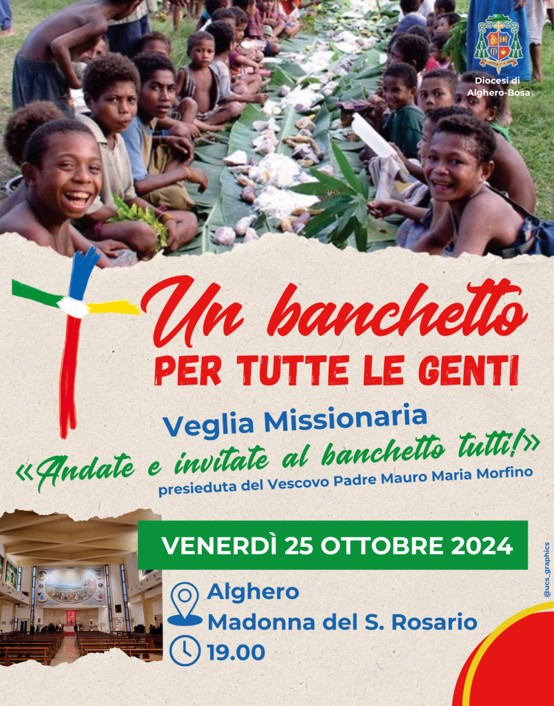 In Diocesi, Venerdì 25 Ottobre 2024 alle ore 19.00, si pregherà per le missioni durante la Veglia organizzata nella Chiesa della Madonna del Santo Rosario presieduta dal Vescovo Mauro Maria.