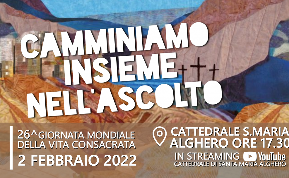 Per vivere questo momento importante siamo invitati Mercoledì 2 Febbraio presso la Cattedrale dell’Immacolata Concezione in Alghero dove verrà celebrata l’Eucarestia alle ore 17.30, presieduta dal nostro vescovo padre Mauro Maria e trasmessa in diretta streaming sul can