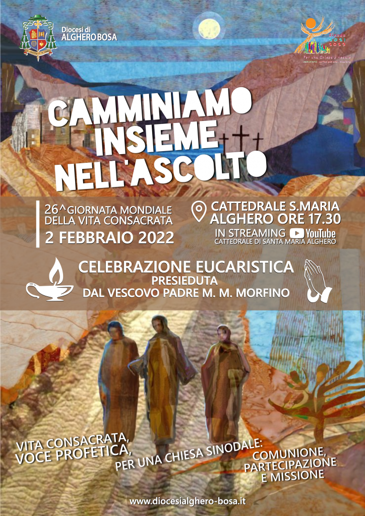 Per vivere questo momento importante siamo invitati Mercoledì 2 Febbraio presso la Cattedrale dell’Immacolata Concezione in Alghero dove verrà celebrata l’Eucarestia alle ore 17.30, presieduta dal nostro vescovo padre Mauro Maria e trasmessa in diretta streaming sul can